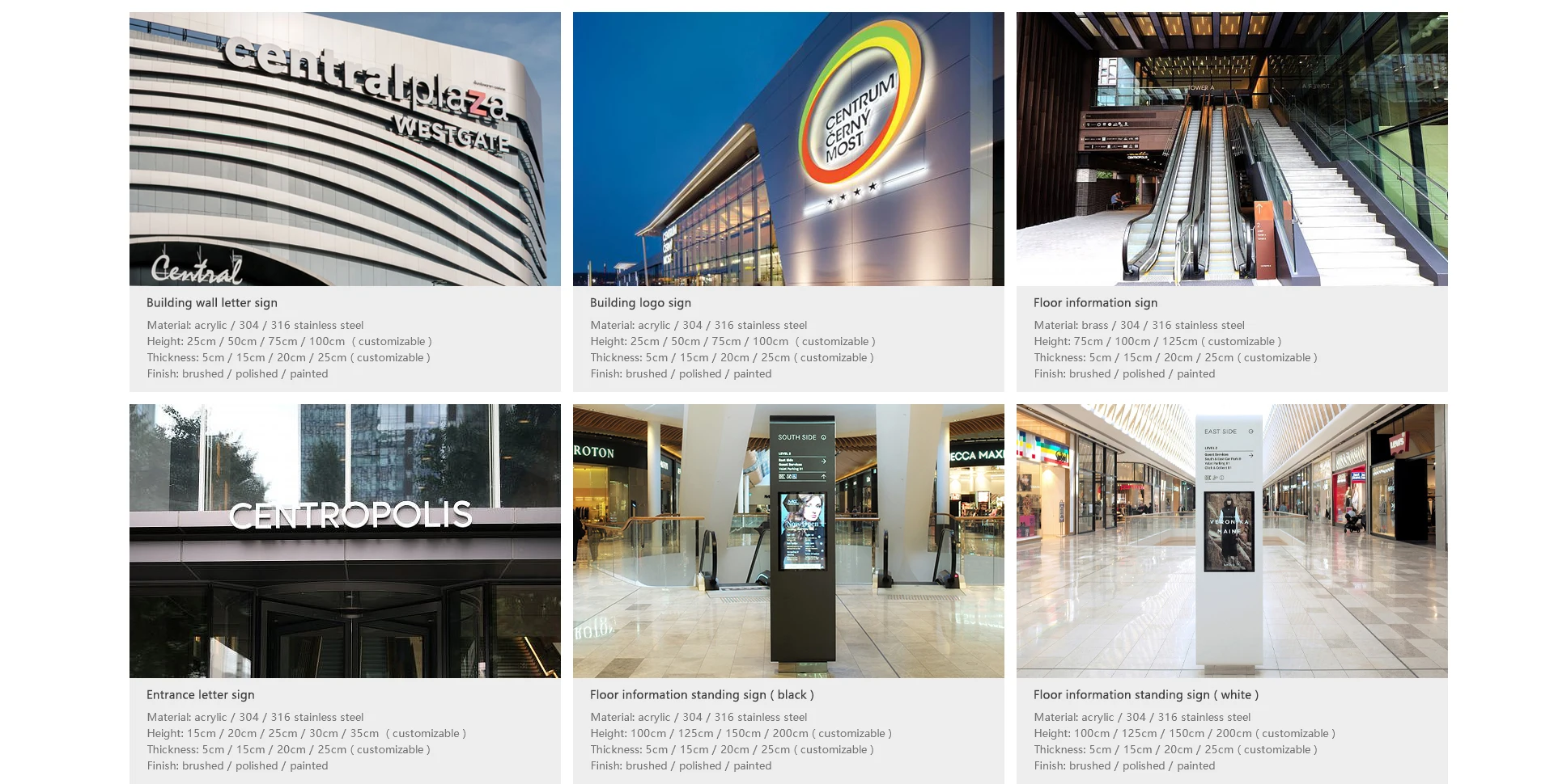 Productos principales:Letrero de pilón, letrero ADA, letrero de orientación, letra LED